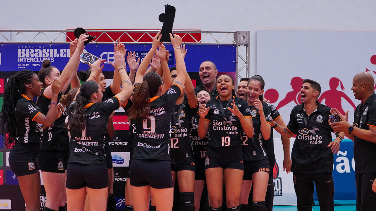 A base do Osasco São Cristóvão Saúde continua mostrando sua força. Depois do time sub-21, agora é a vez do sub-19 levantar o título do Campeonato Brasileiro Interclubes (CBI). E foi uma conquista invicta, com seis vitórias em seis jogos, sem ceder nenhum set. A última, neste domingo, na Cidade do Vôlei, em Osasco, sobre o Vôlei 5, de Florianópolis. O placar da final foi mais 3 a 0, com parciais de 25/17, 25/18 e 25/18.