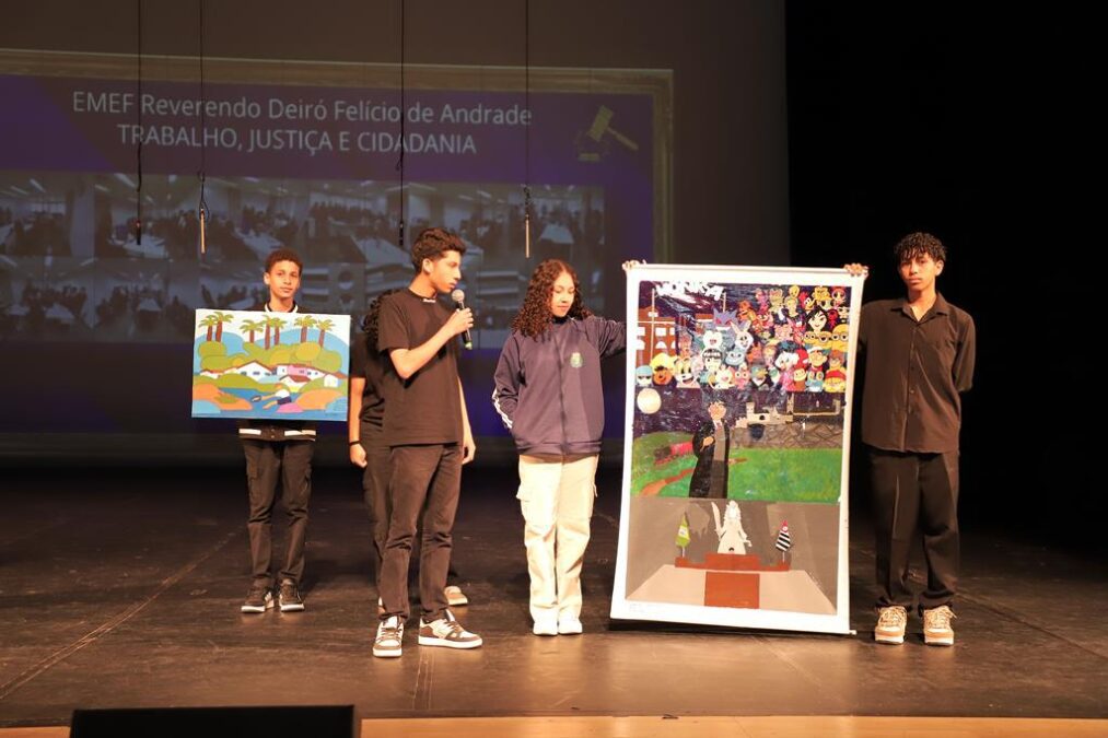 O TJC é uma iniciativa que tem como objetivo aproximar a Justiça do Trabalho da comunidade escolar, oferecendo aos estudantes — especialmente aos do 9º ano — a oportunidade de conhecer, na prática, o funcionamento do sistema judiciário trabalhista. Ao longo do ano, as alunas e os alunos participaram de palestras e debates sobre temas como trabalho infantil, trabalho escravo, emprego formal e informal, ética, direitos humanos e legislação trabalhista.