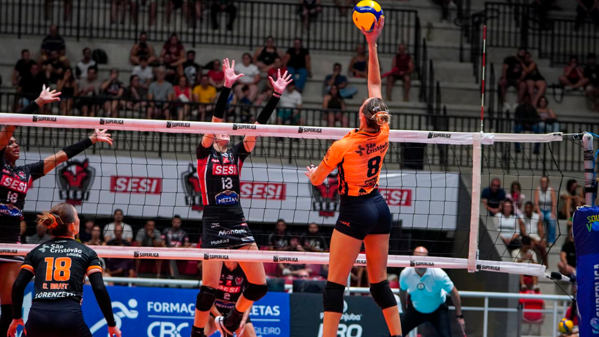 Osasco São Cristóvão Saúde fecha 2025 com vitória e a confirmação do Top 4 na Superliga. Na última partida do ano, nesta segunda-feira (22), na Arena Paulo Skaf, em Bauru, a equipe comandada pelo técnico Luizomar derrotou o Sesi por 3 sets a 0, com parciais de 25/21, 25/18 e 21/21, em 1h29min. O resultado, além de garantir o time osasquense em quarto lugar, definiu o chaveamento para as quartas de final da Copa Brasil, na qual Camila Brait, Jenna Gray, Tifanny, Bianca Cugno, Caitie Baird, Mayhara e cia. defendem o título. O adversário será o Fluminense, em janeiro.