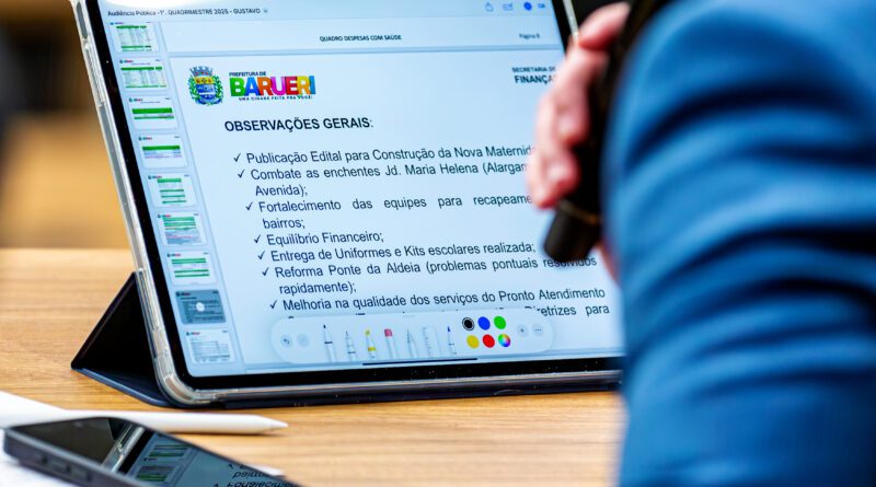 A Câmara de Barueri promove na sexta-feira, 27, a partir das 11h, audiência pública para debater a situação financeira da Prefeitura. No encontro, representantes da Secretaria de Finanças da Prefeitura estarão no plenário da Casa para demonstrar aos vereadores e à população como o dinheiro arrecadado dos impostos foi usado no último quadrimestre de 2025.