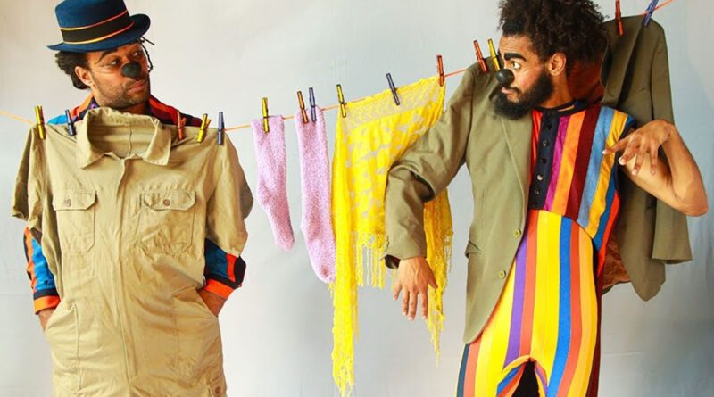 Na apresentação infanto-juvenil, os palhaços Candango e Torradinho penduram no varal personagens e situações do cotidiano, criando momentos de humor e reflexão para o público.