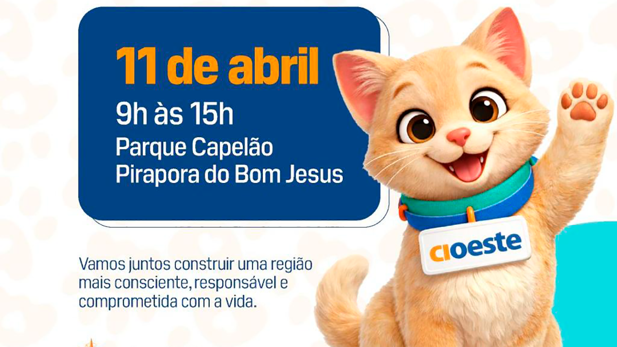 O CIOESTE promove, no dia 11 de abril, o 1º Pet Day Regional, reunindo municípios do Consórcio em uma ação conjunta voltada ao bem-estar animal. O evento será realizado das 9h às 15h, no Parque do Capelão, em Pirapora do Bom Jesus.