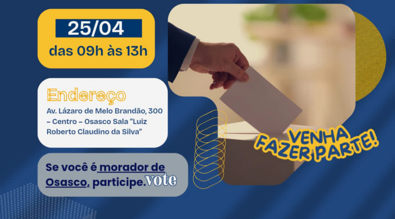 A Prefeitura de Osasco, por meio da Secretaria Executiva de Segurança Alimentar e Nutricional, Sustentabilidade e Inovação Social (SESAN), promove, neste sábado, 25 de abril de 2026, a eleição para composição do Conselho Municipal de Segurança Alimentar e Nutricional (COMSEA), instância fundamental de participação social das políticas públicas de segurança alimentar, combate à fome e promoção da alimentação adequada no município. A votação ocorrerá das 9h às 13h, na Sala Osasco (Sala Luiz Roberto Claudino da Silva), situada na Avenida Lázaro de Melo Brandão, 300 – Centro.
