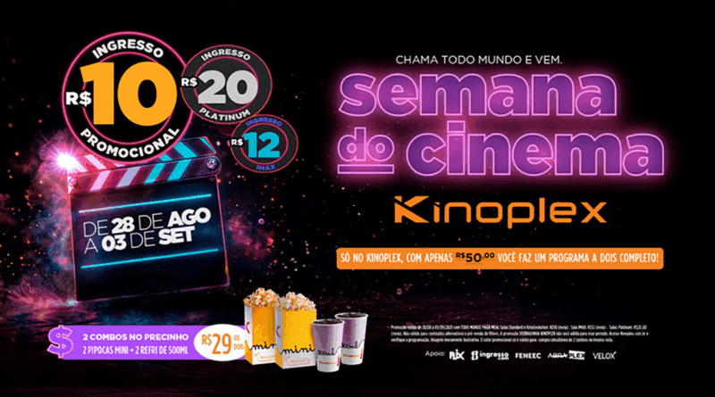 Nova edição da Semana do Cinema no Kinoplex tem ingresso a R$ 10 e programa completo para dois a menos de R$50,00